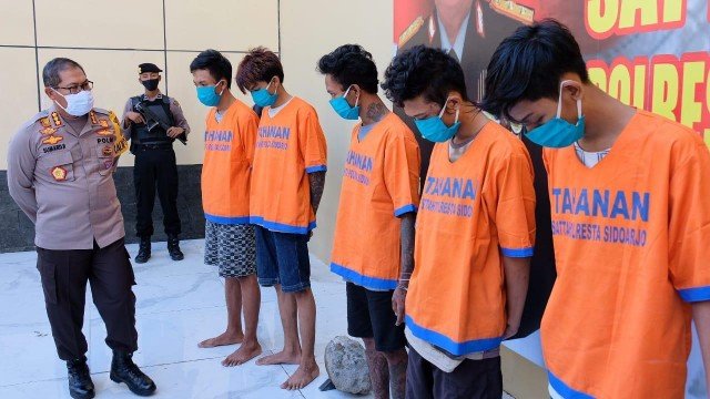 “Dari laporan masyarakat yang masuk terkait terjadinya aksi begal tersebut. Tim kami dari Satreskrim Polresta Sidoarjo berhasil ungkap kasus begal ini, dan menangkap sembilan pelaku. Tujuh sebagai pelaku begal sudah ditangkap, dan satu lagi masih DPO. Kemudian ada lagi dua pelaku sebagai penadah,” ungkap Kapolresta Sidoarjo Kombes Pol. Sumardji, Jumat (8/5/2020) di Mapolresta Sidoarjo.