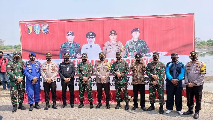 Setelah mengikuti Program Ketahanan Pangan secara virtual bersama Panglima TNI dan Kapolri, Kamis (9/7/2020). Kapolda Jatim, Pangdam V Brawijaya, Pangkoarmada II, Plt. Bupati Sidoarjo dan pejabat lainnya melakukan panen raya dan tebar benih ikan bandeng di tambak Kalanganyar, Sedati, Sidoarjo
