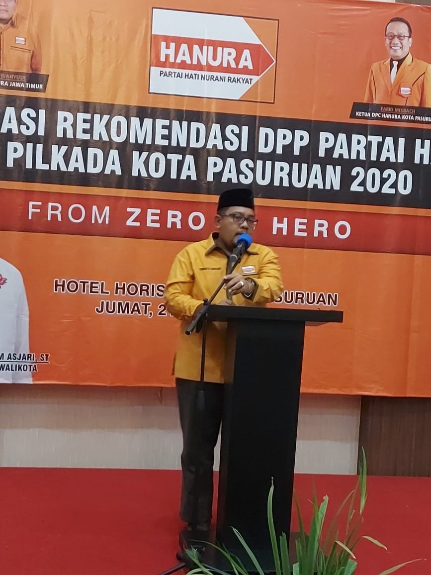 Kegiatan yang diikuti oleh Kader Hanura dan jajaran pengurus DPC, serta pengurus DPD Hanura Jawa Timur ini, dilaksanakan saat sosialisasi rekomendasi Partai Hanura dalam Pilkada Kota Pasuruan.