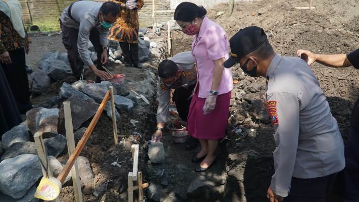 Perletakan batu pettama Gedung TK.Bayangkari 45 itu di awali oleh Nyonya Ahmad Fanani di teruskan Kapolres dan Kabid PAUD serta pemotongan tumpeng oleh tokoh Agama setempat, kegiatan tersebut tetap memaatuhi Protokol Kesehatan.Ari