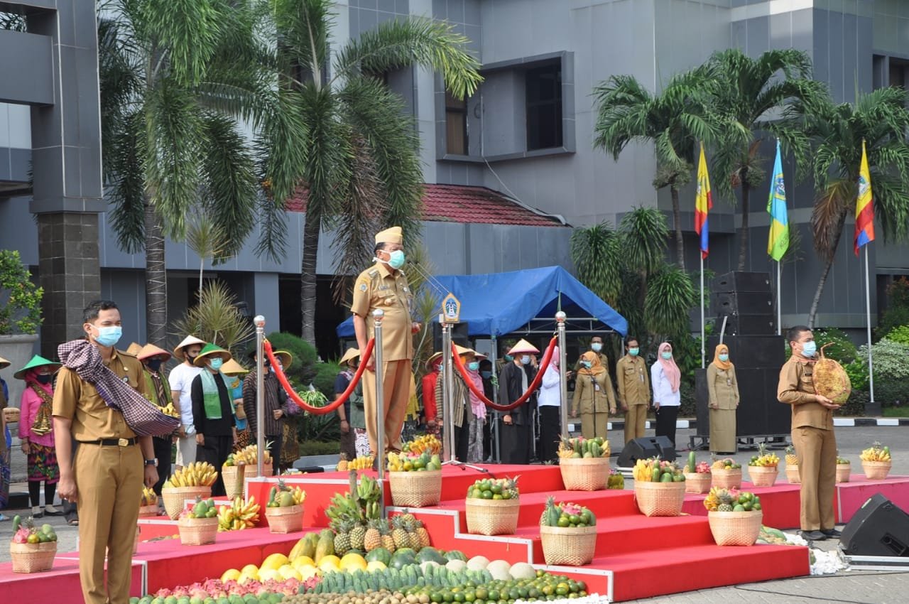 Belum lagi Kepala OPD serta perwakilan dari kantor dinas berpakaian ala petani sambil membawa bakul yang sarat berisi buah dan sayuran.