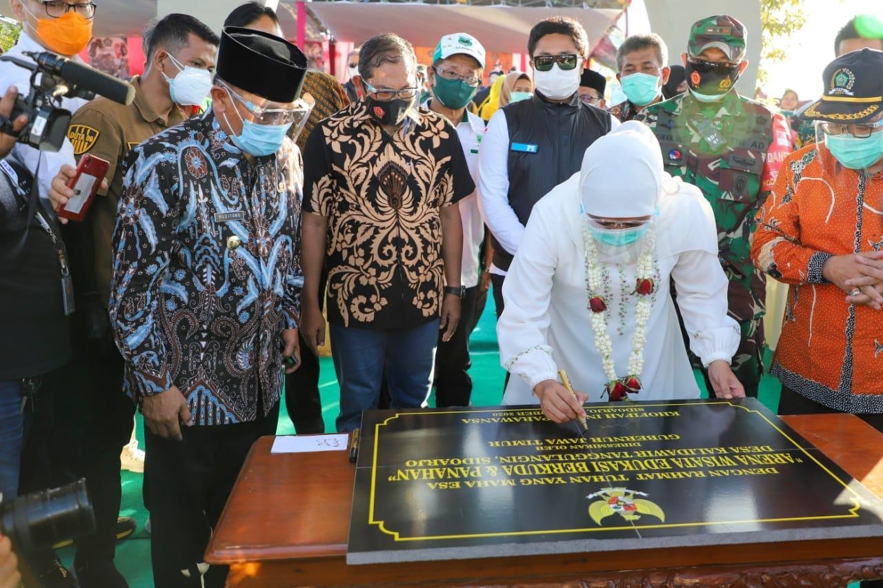 “Desa ini dekat sekali dengan semburan lumpur yang sempat menggegerkan secara nasional. Namun kini tempatnya sangat bagus. Apalagi kalau nanti pengembangan wisata edukasi pertanian dan wisata air telah jadi, saya yakin wisata ini akan menjadi potensi besar di Sidoarjo,” ujar Khofifah.