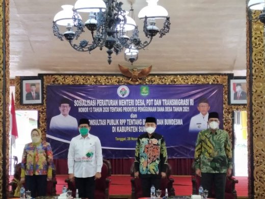 SURABAYAONLINE.CO, Sumenep-Menteri Desa, Pembangunan Daerah Tertinggal dan Transmigrasi Abdul Halim Iskandar dalam sosialisasi peraturan menteri desa nomer 13 tahun 2020 tentang prioritas pembangunan dana desa tahun 2021 dan konsultasi publik RPP tentang Bumdes dan Bumdesma di Kabupaten Sumenep, yang diselenggarakan di pendopo setempat. Sabtu 28/11/2020