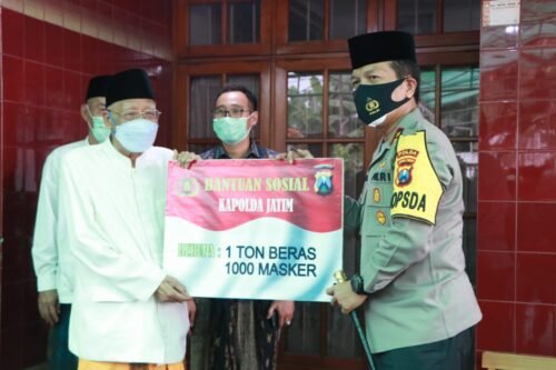 surabaya online- Kapolda Jawa Timur Irjen Pol Nico Afinta didampingi oleh Dirintelkam Polda Jatim Kombes Pol Slamet Hariyadi dan Kabid Humas Polda Jatim Kombes Pol Trunoyudo Wisnu Andiko, usai bertemu dan Silaturahmi dengan Ketua Majelis Ulama Indonesia (MUI) Jatim. K.H. Abdusshomad Buchori, di kediaman. Pada Sabtu (28/11/2020) siang. Kapolda Jatim juga telah memberikan bantuan sosial berupa satu ton beras dan satu ribu masker.