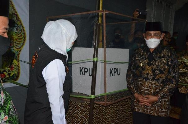 Usai menggelar Rakor di Pendopo Delta Wibawa Sidoarjo, Forkopimda Provinsi Jatim meninjau persiapan Tempat Pemungutan Suara (TPS) di Magersari, Sidoarjo. (Rino Tutuko)