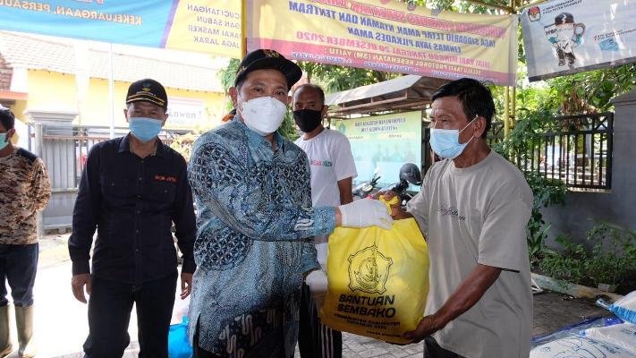 Bantuan paket sembako berisi beras 20 Kg, 4 kg gula pasir, 4 lt minyak goreng, 2 kg telur ayam, 1 kg tepung, 4 kaleng susu kental manis dan 40 bungkus mie instan.