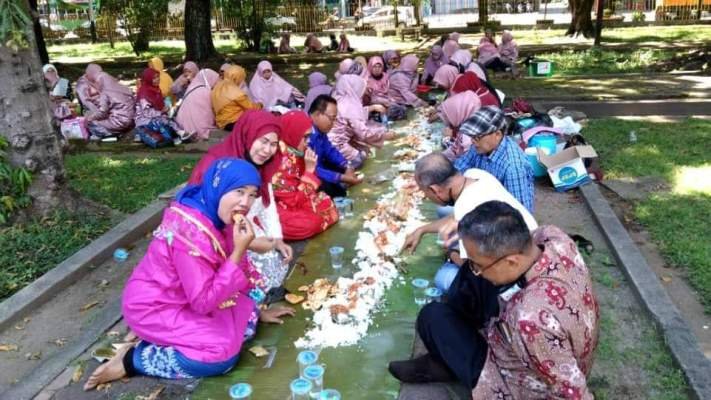 Kunjungan Komunitas Bundo Kanduang Saniangbaka ke Museum Adityawarman tersebut ditutup dengan acara makan bersama, menikmati masakan tradisi Minangkabau yang disajikan di atas daun pisang, mereka duduk pada tikar yang dibentang di pelataran taman Museum Adityawarman.