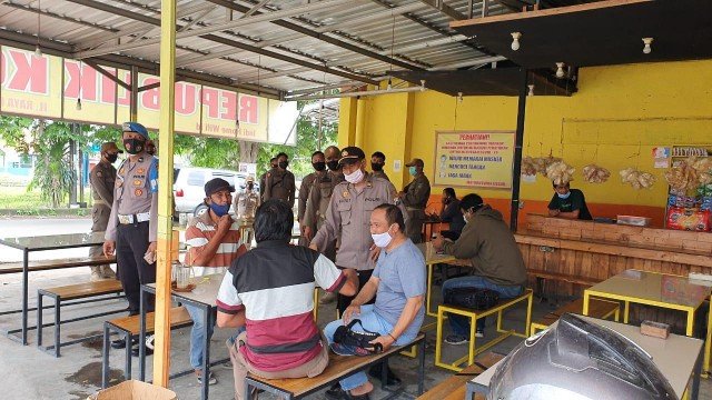 Pelanggar dalam operasi yustisi kali ini, ada yang dikenakan sanksi berupa teguran hingga sanksi sosial. Dengan sasaran operasi pengendara roda dua, empat, warung kopi, dan pasar.(Rino Tutuko)