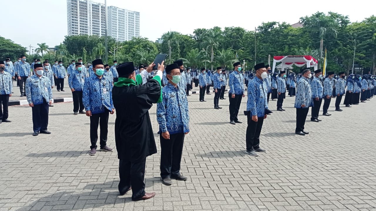 SURABAYAONLINE.CO, GRESIK – Ada yang agak berbeda saat Wakil Bupati Gresik Dr. Mohammad Qosim, mewakili nupati, melantik dan mengambil sumpah jabatan 461 pejabat fungsional, di Halaman Kantor Bupati Gresik Rabu (20/1).