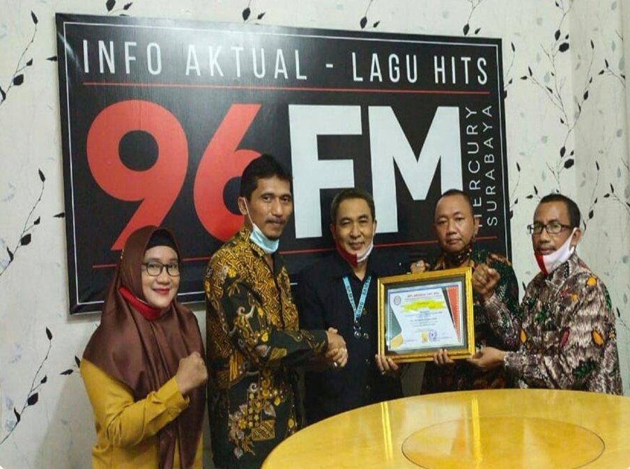 Penghargaan diberikan langsung oleh Ketua DPD Abpednas Jawa Timur Agus Budi Sampurno usai acara Talkshow “Pemberdayaan Peran BPD Dalam Menjalankan Amanah Undang-undang” di studio Radio Mercury 96 FM Jl Citandui Surabaya, Kamis (28/1).
