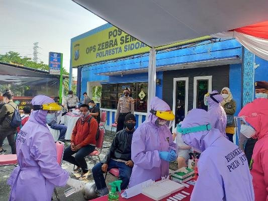 SURABAYAONLINE.CO-Pelaksanaan Pemberlakuan Pembatasan Kegiatan Masyarakat (PPKM) Mikro, Kabupaten Sidoarjo melakukan pengetatan warga luar kota di beberapa titik wilayah perbatasan. Melalui kegiatan rapid tes antigen, sebagai langkah antisipasi penyebaran Virus Corona (Covid-19).