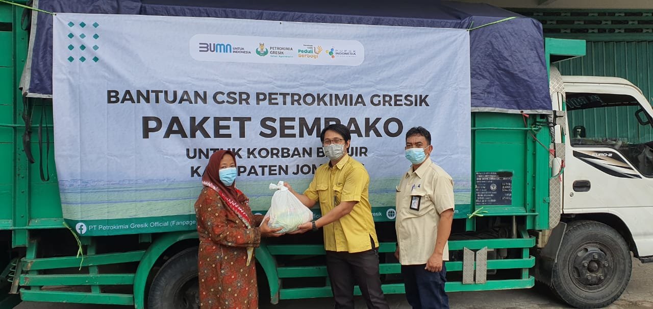 SURABAYAONLINE.CO, GRESIK – Petrokimia Gresik, perusahaan Solusi Agroindustri anggota holding Pupuk Indonesiai menyalurkan bantuan Corporate Social Responsibility (CSR) berupa 1.000 paket sembako senilai Rp100 juta, untuk korban banjir di Kabupaten Jombang Jawa Timur dan Kabupaten Pati Jawa Tengah, Selasa (16/2).