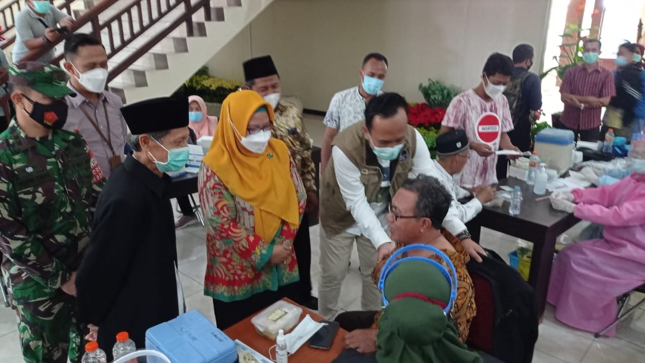 “Kami berharap vaksinasi ini bisa lebih mengoptimalkan peribadatan saat bulan Ramadhan nanti, karena kiai dan imam masjid merupakan garda terdepan dalam pelaksanaan ibadah Ramadhan,” kata Wabup Bu Min.