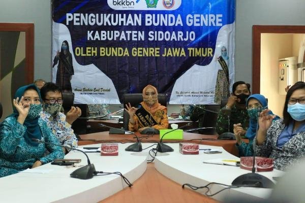 SURABAYAONLINE.CO – Ny. Sa’adah Ahmad Muhdlor Ali, S.Hum istri Bupati Sidoarjo H. Ahmad Muhdlor Ali S.IP dikukuhkan sebagai Bunda GenRe Kabupaten Sidoarjo oleh Bunda GenRe Jawa Timur Arumi Bachsin Emil Dardak istri Wakil Gubernur Jatim Emil Elestianto Dardak. Pengukuhan dilakukan secara virtual melalui zoom meeting di masing-masing kabupaten/kota di Jatim, Selasa, (9/3). Pengukuhan dilakukan pada Rapat Koordinasi Teknis (Rakornis) Kemitraan Program Bangga Kencana tingkat Provinsi Jawa Timur secara virtual.