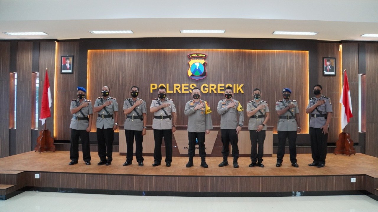Prosesi serah terima jabatan itu dipimpin Kapolres Gresik AKBP Arief Fitrianto disaksikan jajaran Polres Gresik, dengan menggunakan protokol kesehatan di Aula Sarja Arya Racana Polres Gresik, Rabu (17/3) siang.