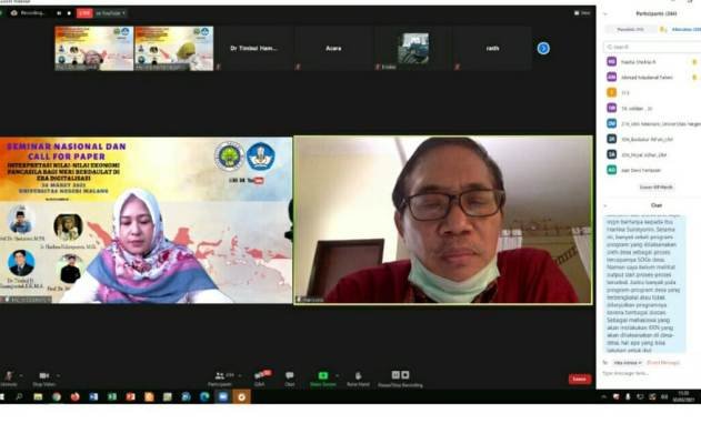 Mempertahankan nilai luhur budaya bangsa Indonesia yang sesuai dengan Ideologi Pancasila menjadi tugas besar yang harus dihadapai bangsa ini dalam menghadapi revolusi Industri 4.0. dalam membekali mahasiswa generasi milenial tentang bagaimana mempertahankan budaya bangsa yang sesuai dengan ideologi Pancasila Jurusan Ekonomi Pembangunan Universitas Negeri Malang mengadakan Seminar Nasional dan Call For Paper secara online (30/03/2021) Seminar bertajuk “Interpretasi Nilai-Nilai Ekonomi Pancasila bagi NKRI Berdaulat di Era Digitalisasi” ini dihadiri oleh lebih dari 250 peserta yang berasal dari lebih 10 instansi berbeda di Indonesia.