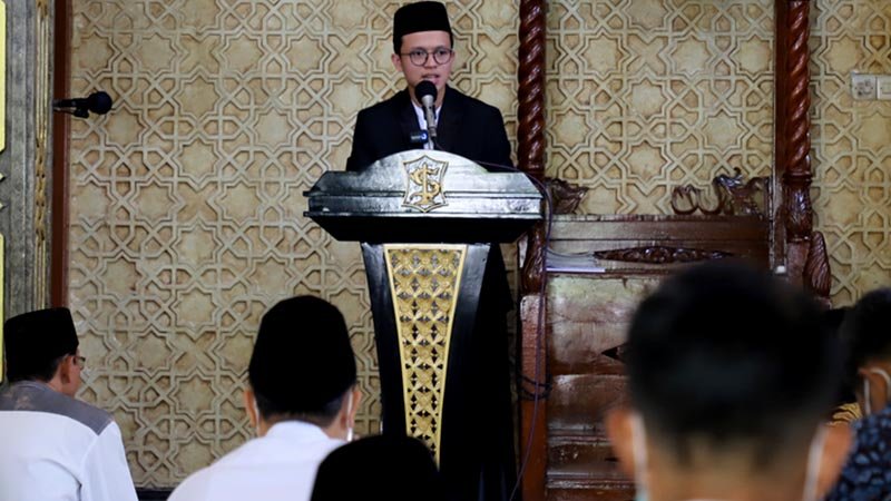 Surabayaonline.co | Surabaya – Pelajar SMP Al-Hikmah Kota Surabaya menjadi khotib dan imam pada Salat Jumat di Masjid Nurul Faidzin, komplek Kantor Dinas Pendidikan (Dispendik) Kota Surabaya, Jumat (23/4/2021).