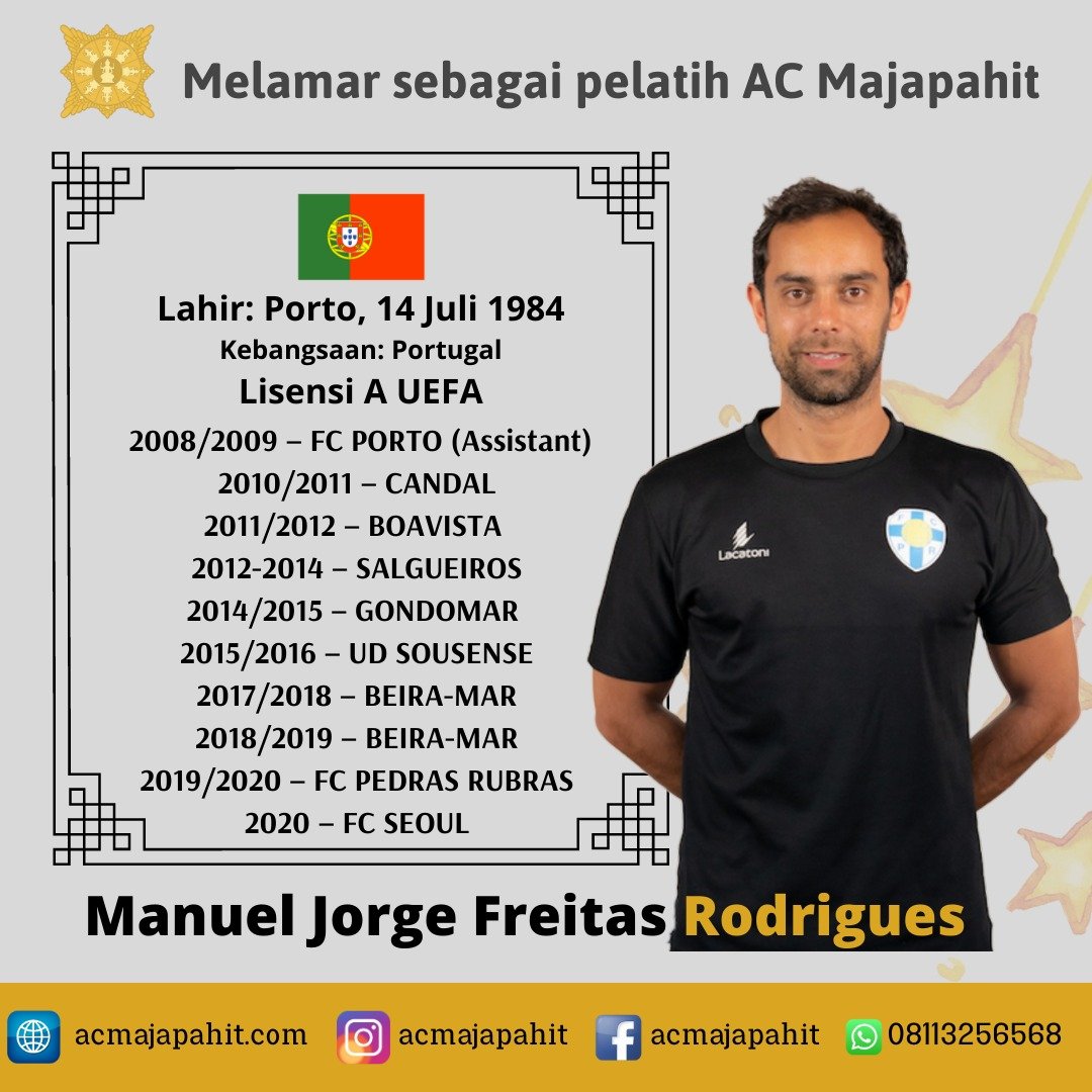 Media Officer AC Majapahit Unggul Akbar Muttaqien menerangkan bahwa email tersebut dikirim melalui sebuah agensi pemain dan pelatih sepak bola atas nama Manuel Jorge Freitas Rodrigues, asal Portugal. Dari CV tersebut diketahui jika sang pelatih memiliki pengalaman menangani beberapa klub di Portugal.