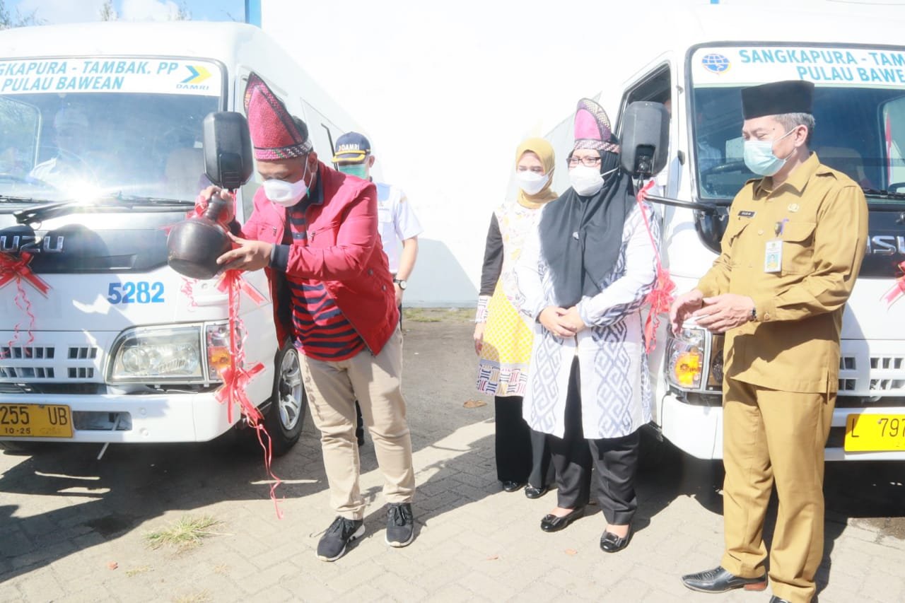 SURABAYAONLINE.CO, GRESIK – Begitu menginjakkan kaki di Pelabuhan Sangkapura Pulau Bawean, Selasa (8/6) siang, untuk mengawali kunjungan kerjanya selama tiga hari, Bupati Fandi Akhmad Yani dan Wakil Bupati Aminatun Habibah melaunching angkutan umum Perintis Sangkapura-Tambak, dan angkutan penyeberangan perintis Bawean Pulau-Gili.