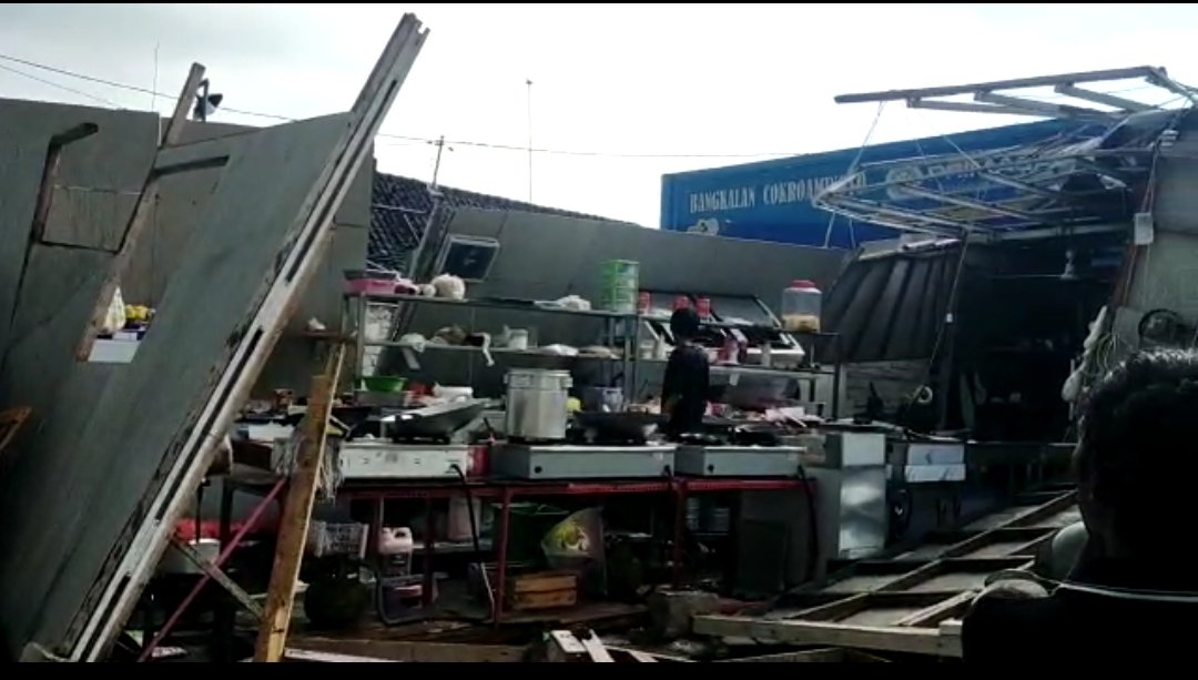 Angin yang berlangsung sekitar 20 menit ini, memporak porandakan beberapa café di Bangkalan, di antaranyacafé BIMA N ZAIN, Mie Endess dan poros jalan banyak di temukan pohon tumbang, bahkan sepeda motor yang terparkir di depan café maupun toko-toko roboh.