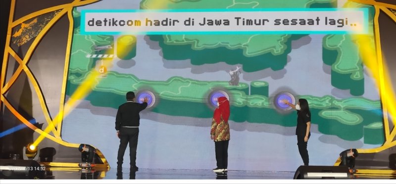 Usai memberikan sambutan, Khofifah, Alfito, dan Sena langsung menekan tombol di layar virtual sebagai tanda diluncurkannya detik Jatim.