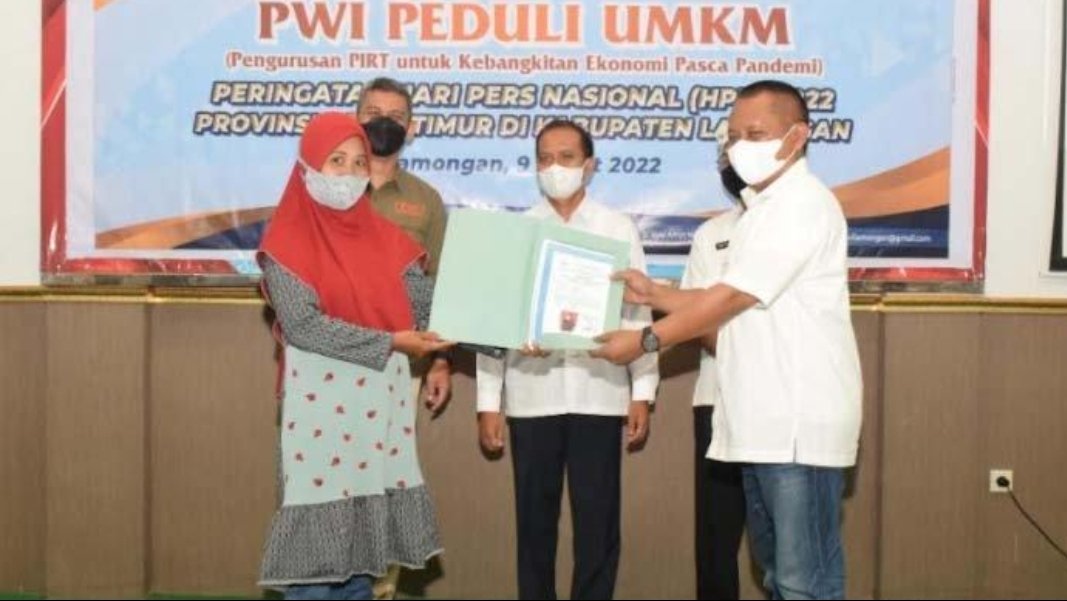 SURABAYAONLINE.CO, Lamongan – Masih dalam upaya membangkitkan sektor ekonomi pasca pandemi, Persatuan Wartawan Indonesia (PWI) Jawa Timur dan Lamongan bersama Pemkab setempat, menggelar bakti sosial pengurusan legalitas Perijinan Industri Rumah Tangga (P-IRT ) bagi ratusan pelaku pelaku Industri Kecil Menengah (IKM) dan Usaha Mikro Kecil Menengah (UMKM).