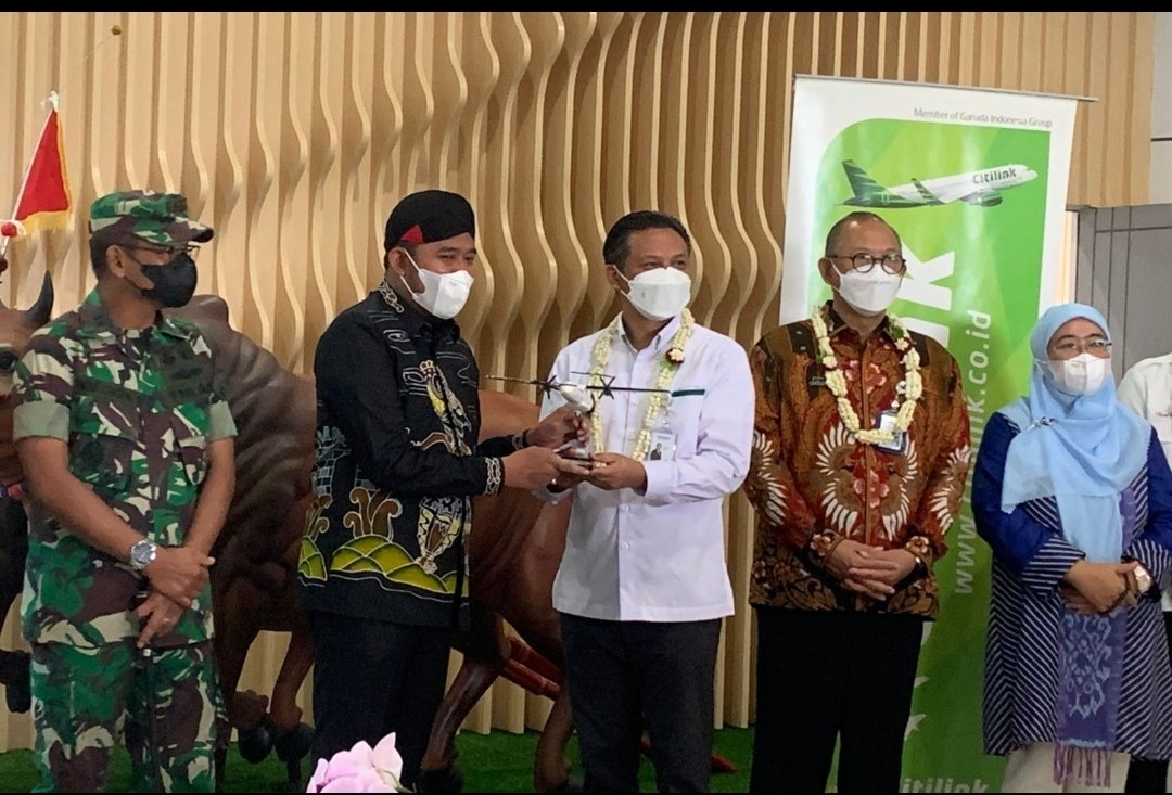 Penerbangan pesawat komersil maskapai CitiLink Indonesia rute Sumenep-Surabaya PP resmi dibuka pada hari ini, Kamis (29/4/2022) di bandar udara Trunojoyo Sumenep.