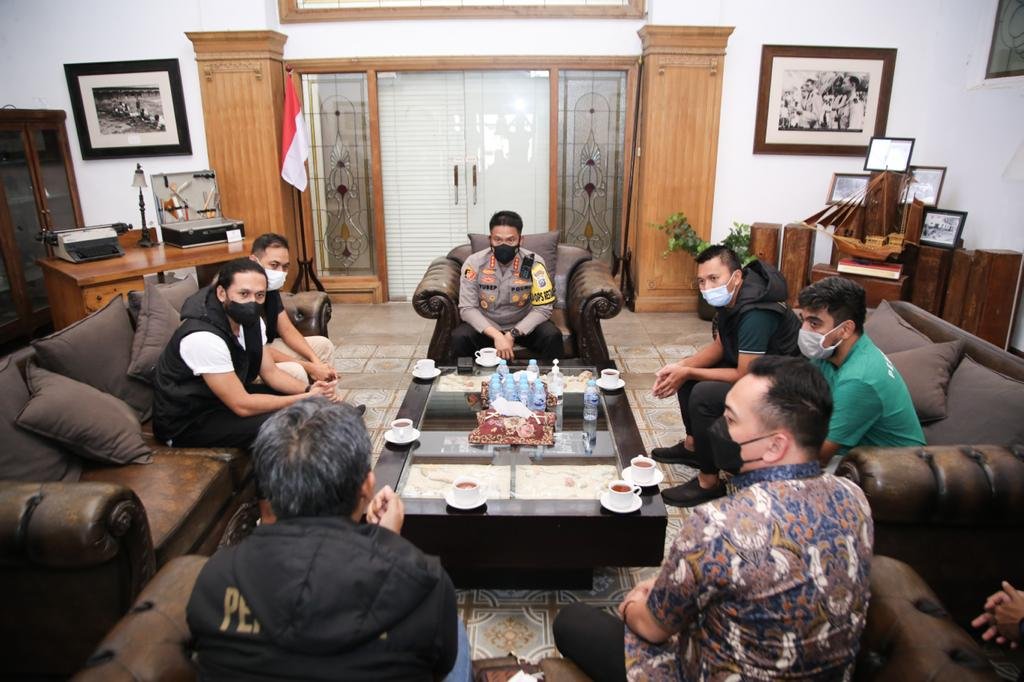 SURABAYAONLINE.CO – Jelang laga Persebaya vs PSIM Jogja di GBT (Gelora Bung Tomo) Surabaya minggu ini. Kapolrestabes Surabaya Kombes Pol. Akhmad Yusep Gunawan didampingi PJU (Pejabat Utama) Polrestabes Surabaya sambut kunjungan Presiden Persebaya Surabaya, Azrul Ananda bersama dengan Menejemen Persebaya di Lobby Museum hidup Polrestabes Surabaya, Jumat (15/7).