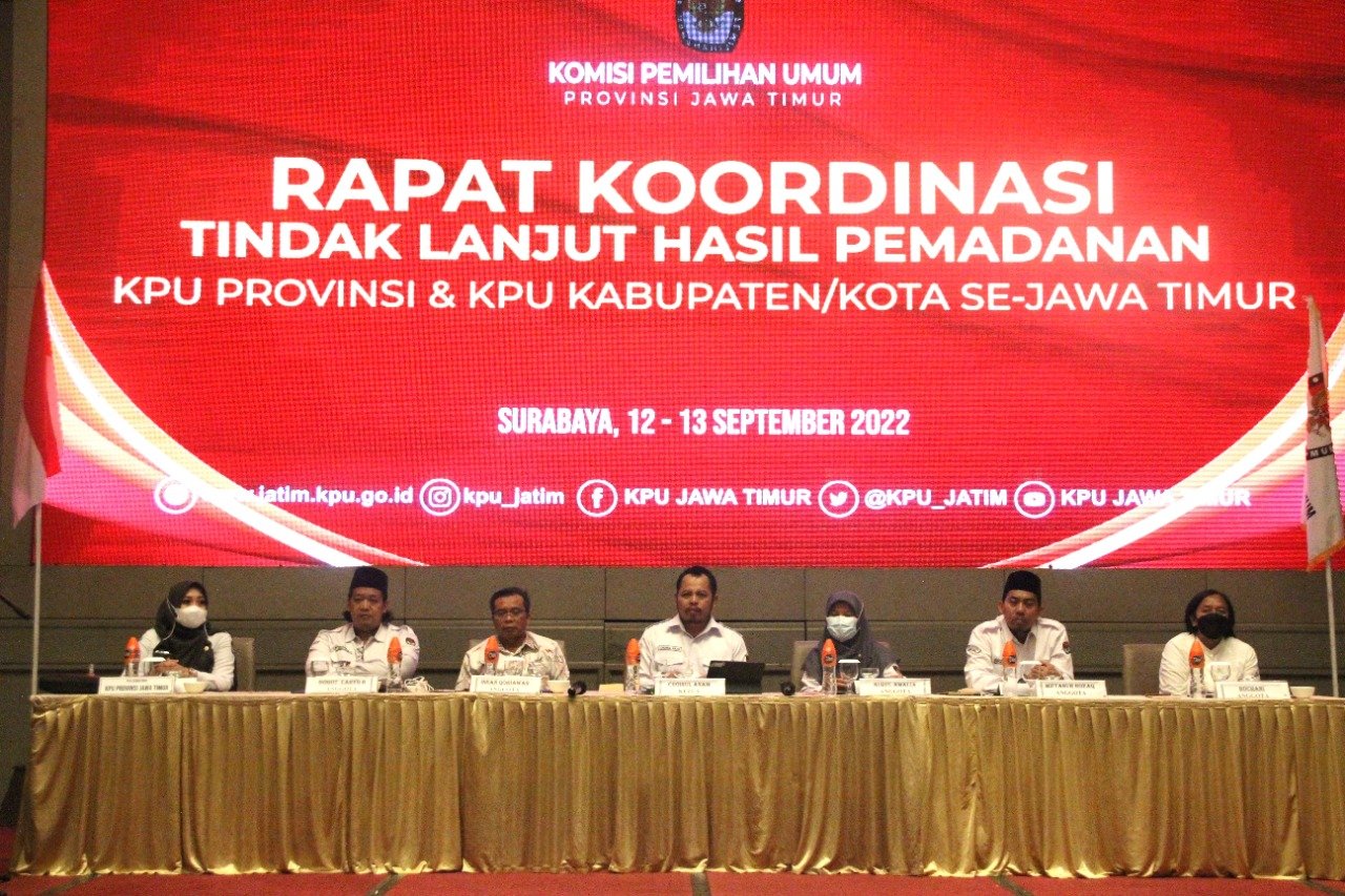 SURABAYAONLINE.CO – Komisi Pemilihan Umum (KPU) Kabupaten/Kota di Jawa Timur diharapkan terus mengoptimalkan kinerja terkait data pemilih. Utamanya bagi daerah yang memiliki jumlah data pemilih besar diharapkan dapat bekerja dengan cepat dan akurat. Hal ini disampaikan Ketua KPU Jatim Choirul Anam saat pembukaan rapat koordinasi bersama 38 kabupaten/kota, Selasa (12/9)