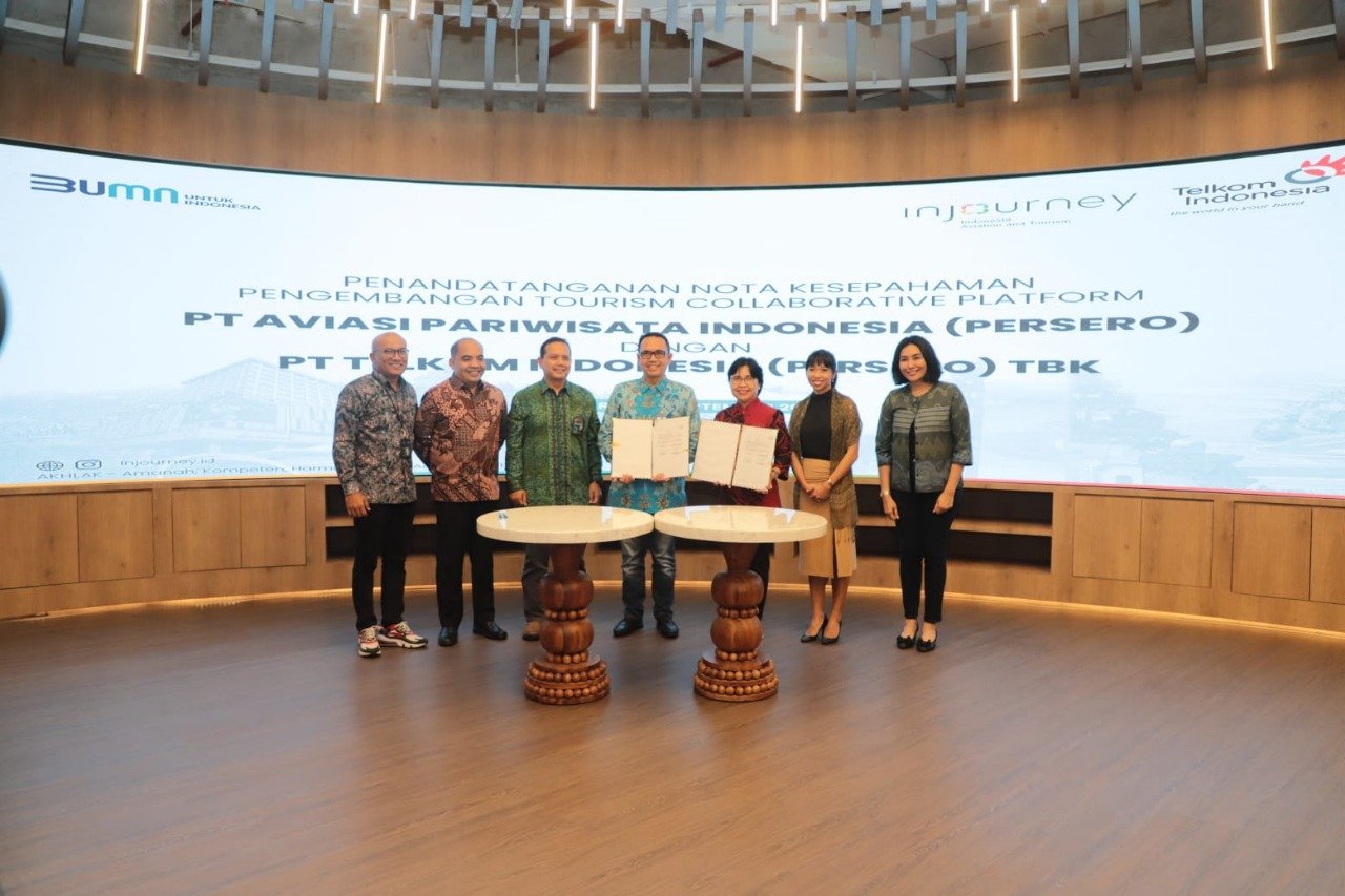 SURABAYAONLINE.CO – PT Telkom Indonesia (Persero) Tbk atau Telkom dan PT Aviasi Pariwisata Indonesia (Persero) atau Injourney bekerja sama membangkitkan sektor pariwisata Indonesia, salah satunya melalui akselerasi digitalisasi ekosistem pariwisata yang sejalan dengan program pemerintah dalam mempercepat transformasi digital nasional.