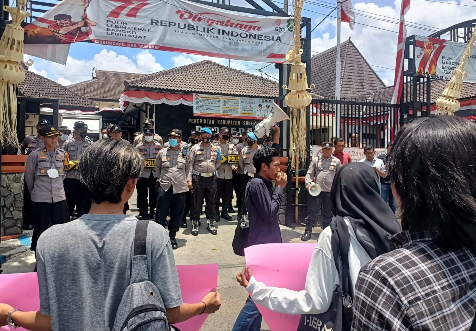 SURABAYAONLINE.CO, Sumenep – Kantor Badan Perencanaan Daerah (Bappeda) dan PU Tata Ruang Kabupaten Sumenep, Madura, Jawa Timur didemo, Senin (10/10).