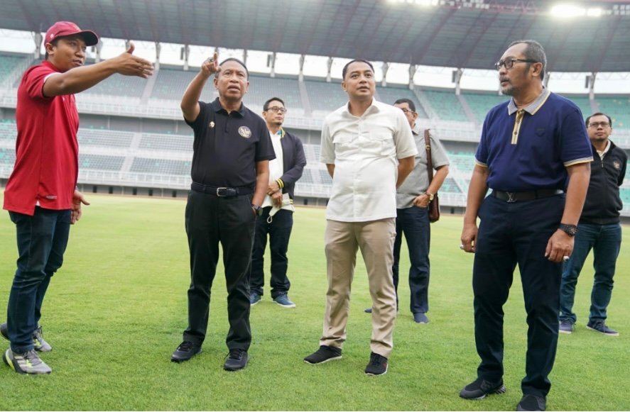 Selain Walikota Surabaya Eri Cahyadi dan Wakil Ketua Asprov PSSI Jawa Timur Amir Burhannudin yang memberikan berbagai penjelasan tentang kondisi terkini stadion, turut serta meninjau Wakil DPRD Jawa Timur Sahat Tua P Simanjuntak, Kadispora Pulung Chausar, sedangkan dari Kemenpora Asdep Orpres Surono.