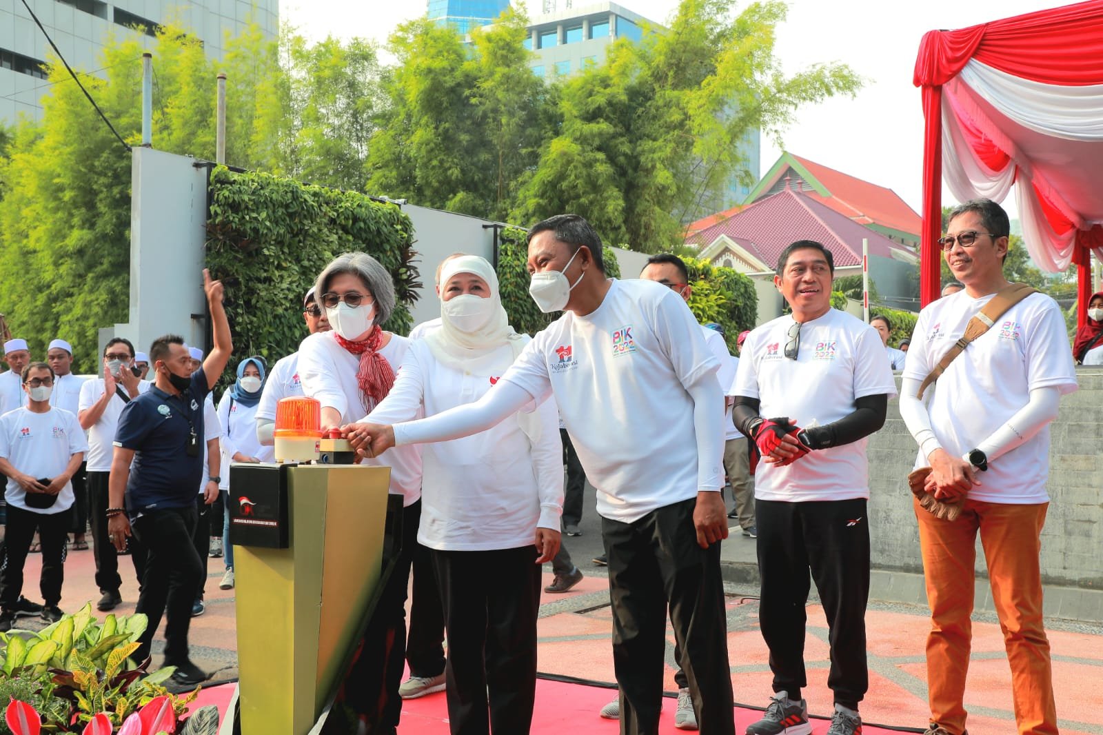 Dalam launching tersebut Gubernur Khofifah didampingi langsung Kepala Kantor OJK Regional 4 Jawa Timur Bambang Mukti Riyadi dan Anggota Komisi XI DPR RI Dapil Jawa Timur Indah Kurnia serta Deputy Bank Indinesia yang ditandai dengan penekanan tombol sirine secara bersama.