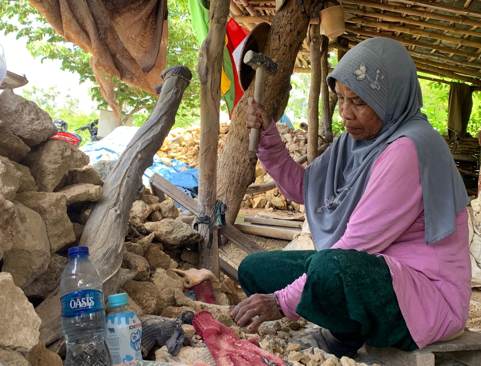 Perempuan janda yang memiliki satu anak itu mengaku sudah sudah 10 tahun menekuni pekerjaan itu. Meski tak seperti laki-laki, tetapi dia tetap kuat memecah batu besar hingga kecil.