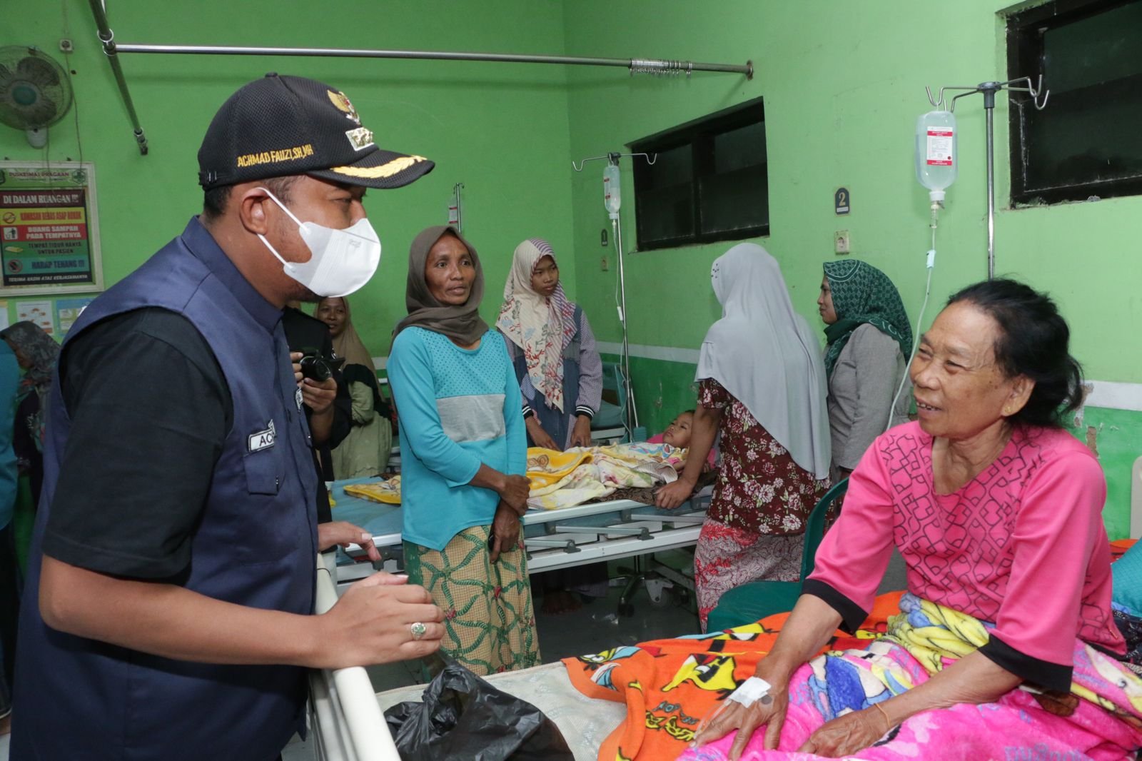 Di Puskesmas Pragaan, Bupati Fauzi menyapa satu persatu pasien terdampak banjir kemarin. “Bagaimana kondisinya buk, baik-baik saja kan,” tanya Politisi PDI Perjuangan itu ke salah satu pasien.