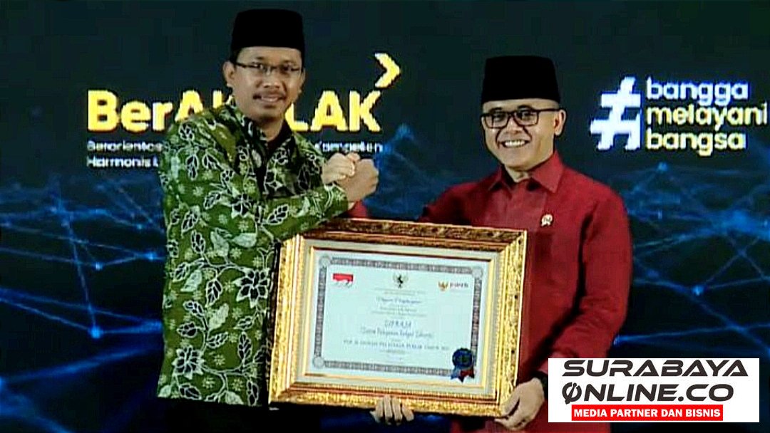 SURABAYAONLINE.CO, Sidoarjo–Bupati Sidoarjo Ahmad Muhdlor Ali berkomitmen mengedepankan birokrasi berbasis digital dalam melayani masyarakat. Salah satunya dengan menerapkan aplikasi pelayanan publik online Sipraja di semua desa/kelurahan, kecamatan dan OPD (Organisasi Perangkat Daerah) terkait. Upaya Pemkab Sidoarjo menghadirkan layanan digital Sipraja itu mendapat apresiasi dan penghargaan Top 45 Inovasi Pelayanan Publik Terbaik Nasional dari Kementerian Pendayagunaan Aparatur Negara Reformasi Birokrasi (Kemenpan RB). Penghargaan diserahkan langsung oleh Menpan RB Abdullah Azwar Anas kepada Bupati Sidoarjo Ahmad Muhdlor Ali di Jakarta. Selasa (6/12/2022).