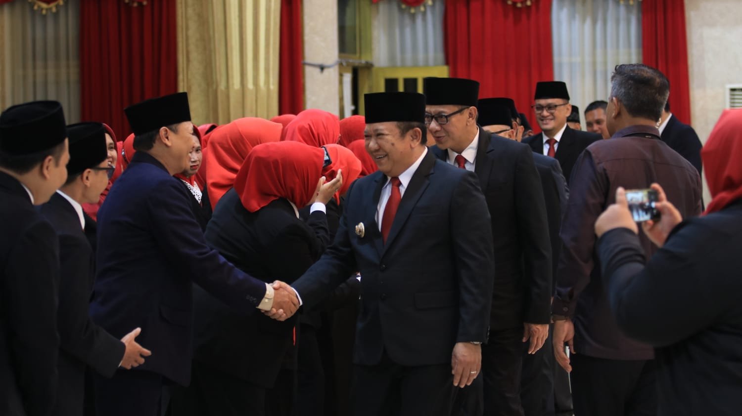 “Kepada para pejabat yang dilantik agar bekerja dengan kualitas kerja yang terus meningkat. Segeralah beradaptasi dengan lingkungan yang baru,” papar Bupati Hendy. Tak hanya itu, pesan mendalam juga disampaikan oleh bupati. Tepatnya, kepada ratusan kepala sekolah yang malam ini mengikuti pelantikan. “Ada sekitar 160 kepala sekolah,” tutur bupati.