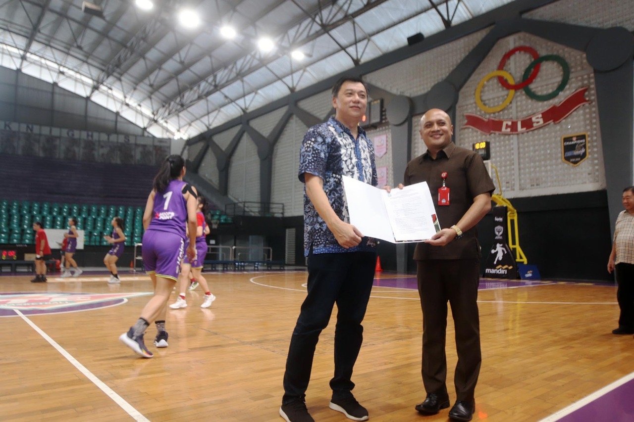 GOR CLS, yang beralamat di Jalan Kertajaya Indah Timur I Nomor 1, Surabaya, diserahkan dari Ketua Umum Yayasan CLS, Ming Soedarmono kepada Kadispora Jatim, Pulung Chausar.