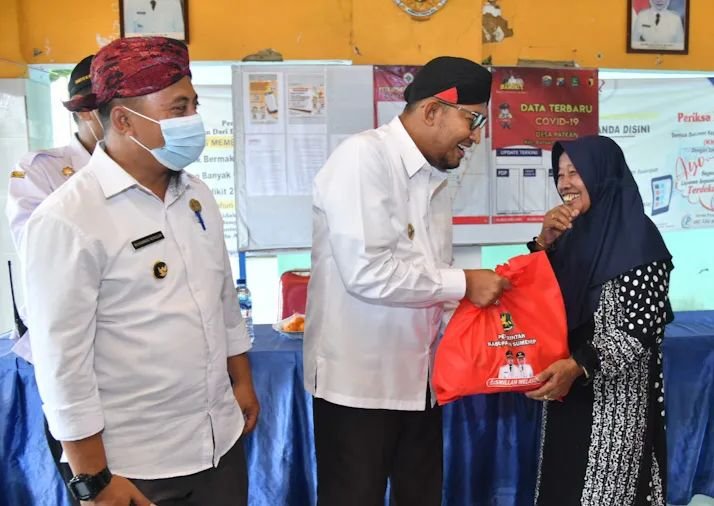 Sebelum menyerahkan paket sembako, orang nomor satu di Sumenep ini menyempatkan diri berbincang serta menerima curhatan para korban.