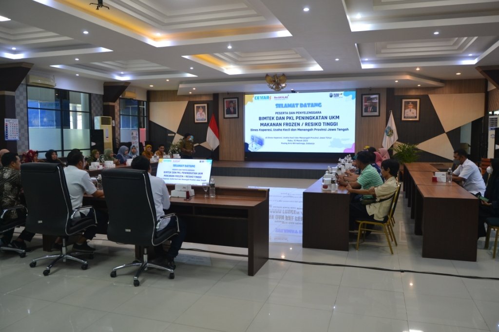 SURON.CO, Sidoarjo – Perkembangan UMKM yang begitu pesat membuat Diskop UKM Jawa Tengah tertarik untuk belajar ke Dinas Koperasi dan Usaha Kecil dan Menengah Provinsi Jawa Timur (Diskop UKM Jatim). Mereka melakukan kunjungan dalam bentuk bimbingan teknis dan praktik kerja lapangan (PKL) peningkatan UKM makanan frozen yang berisiko tinggi.