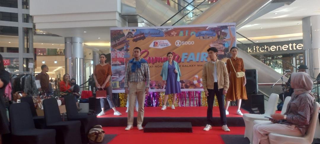 SURON.CO, Surabaya – Sogo Department Mall Galaxy Surabaya menggelar fashion show di Atrium Galaxy Mall Surabaya dengan menghadirkan busana bertemakan Summer Fair. Diikuti 10 brand dan salah satunya dari UMKM, yakni Hyarta Gallery.