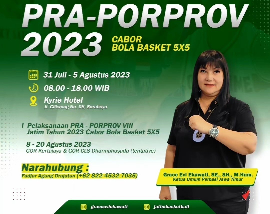 SURON.CO, Surabaya – Sebanyak 20 tim basket putra, akan bersaing meraih tiket ke babak utama Pekan Olahraga Provinsi (Porprov) Jawa Timur VIII/2023, di ajang Pra Porprov di GOR Kertajaya, Surabaya, 8-10 Agustus dan 14-18 Agustus 2023, mendatang.