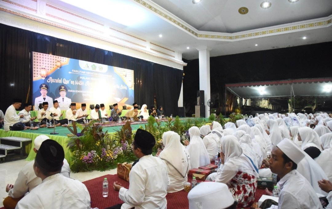 SURON.CO – Pemkab Sidoarjo fasilitasi Forum Komunikasi Kepala Taman Pendidikan Al-Quran (FKKTPQ) Kabupaten Sidoarjo menggelar peringatan malam Nuzulul Quran di pendopo Delta Wibawa, Minggu malam, (31/3).