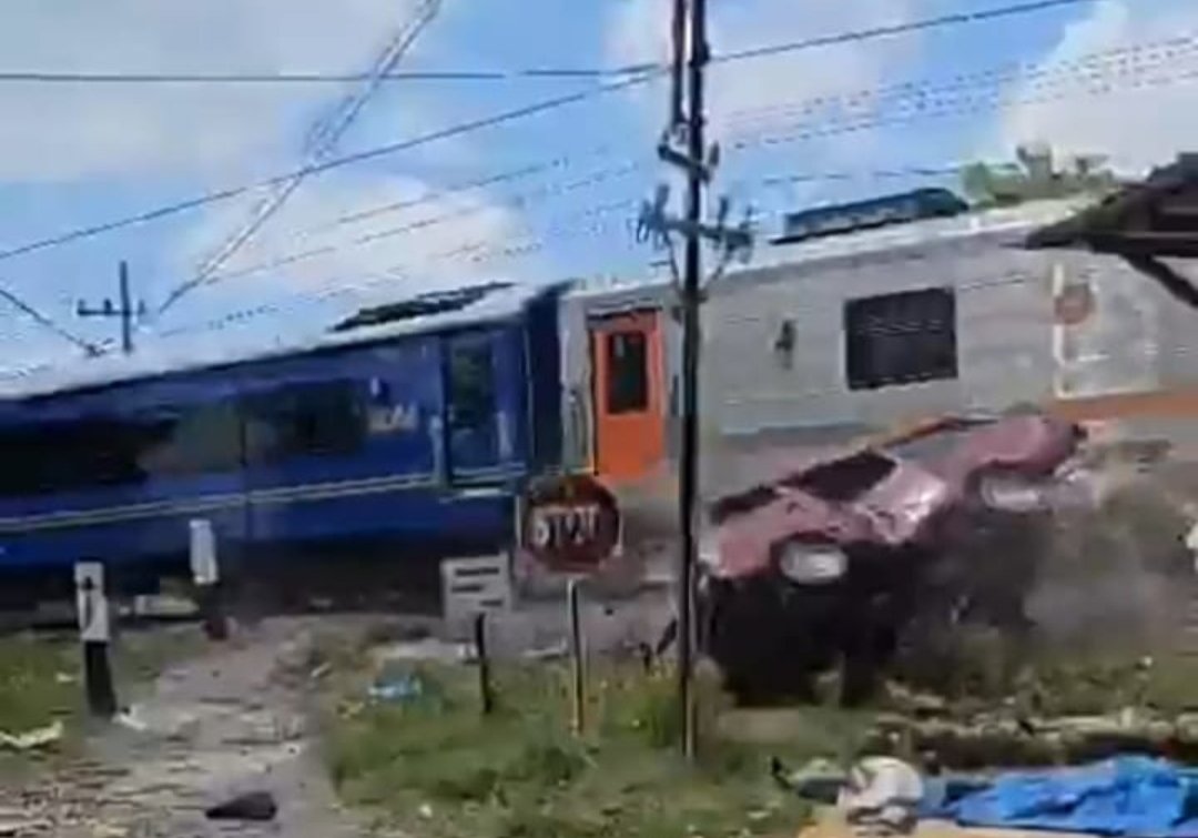 Beruntung para penumpang lekas menghambur keluar mobil untuk menyelamatkan diri, sebelum minibus butut tumpangannya dihajar si naga besi.