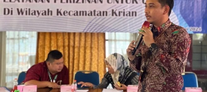 Kegiatan yang digelar di Pendapa Kecamatan Krian dan dihadiri para pejabat instansi terkait. D iantaranya dari DPMPTSP Sidoarjo, Dinas Koperasi dan UKM Sidoarjo, BPJS Ketenagakerjaan Sidoarjo Krian dan Kecamatan Krian.
