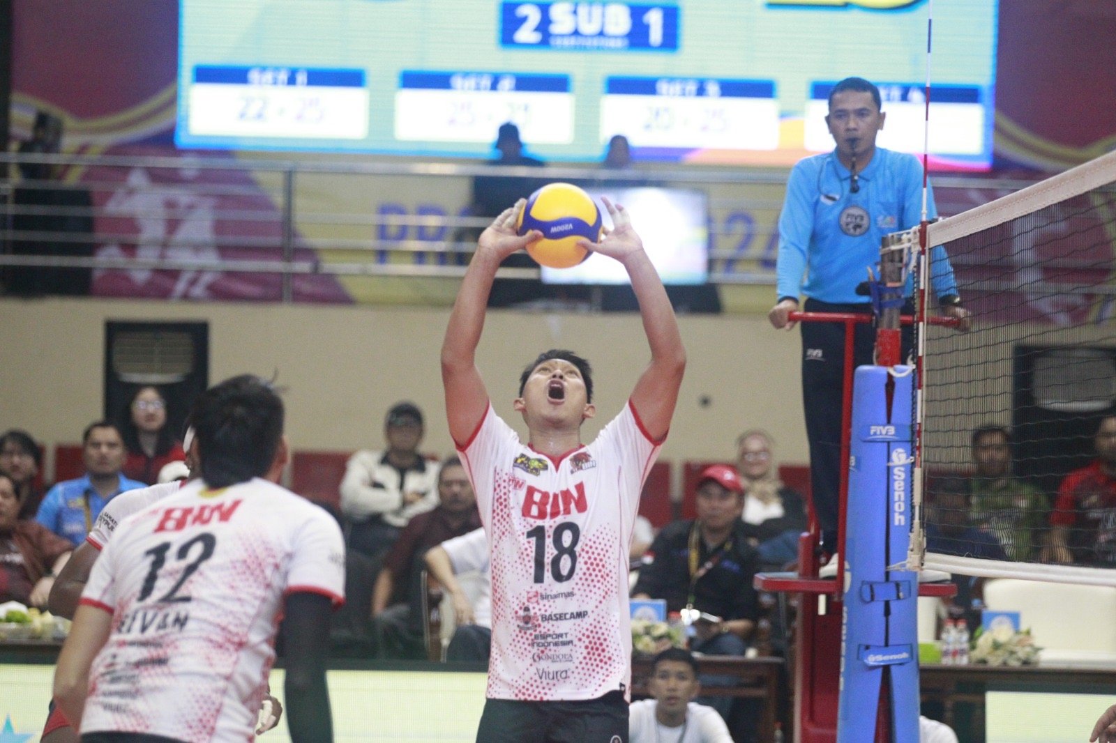 Pada laga pembukanya, di GOR Jatidiri Semarang, Kamis (11/7/2024), Jakarta STIN BIN memetik kemenangan pertamanya atas tim kuda hitam, Palembang Bank SumselBabel dengan skor 3-1 (25-22, 21-25, 25-20, 40-38).
