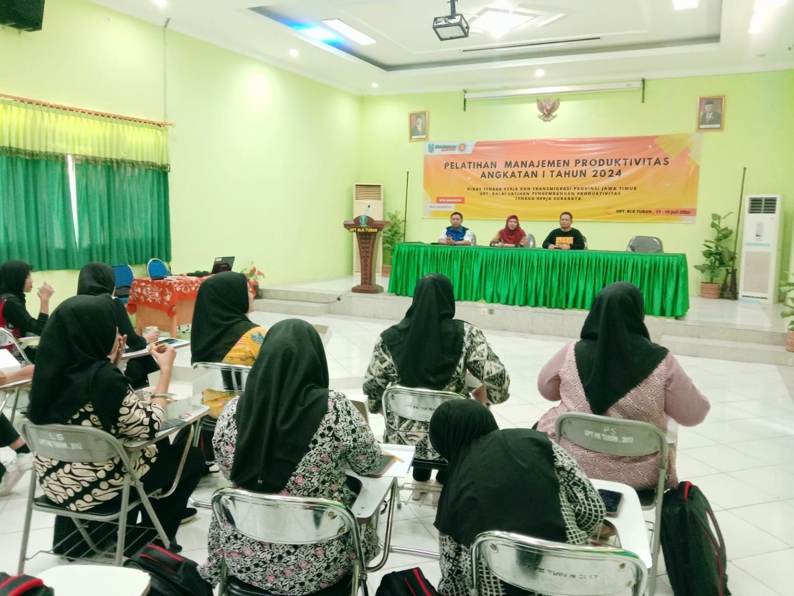 SURON.CO, Tuban – UPT Balai Latihan Pengembangan Produktivitas Tenaga Kerja (BLP2TK) Surabaya Disnakertrans Provinsi Jatim menggelar pelatihan manajemen produktivitas angkatan I 2024 bagi pelaku UMKM di Kabupaten Tuban.