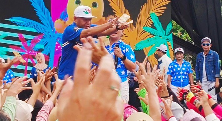 Salah satu momen paling ditunggu adalah saat Bupati Gatut Sunu dan salah satu sponsor menebar uang kepada masyarakat sebagai bentuk apresiasi dan kepedulian terhadap warga. Aksi ini disambut sorak sorai dan antusiasme luar biasa dari pengunjung.