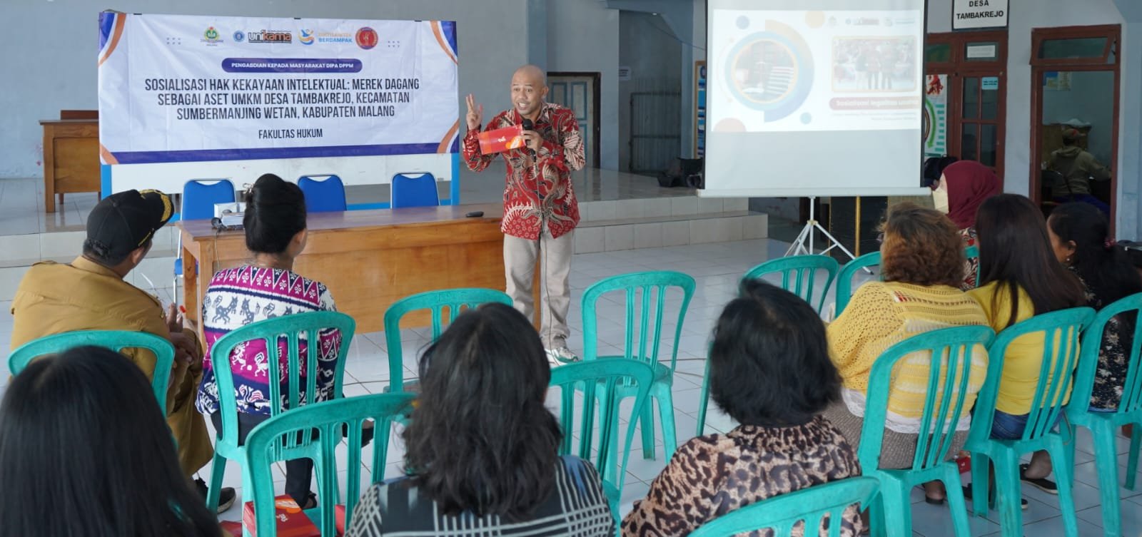 Dalam kegiatan yang berlangsung di Balai Desa Tambakrejo, Tim Dosen Unikama tidak hanya menyampaikan materi teoritis, namun juga memberikan pendampingan teknis pendaftaran merek dagang kepada pelaku usaha.