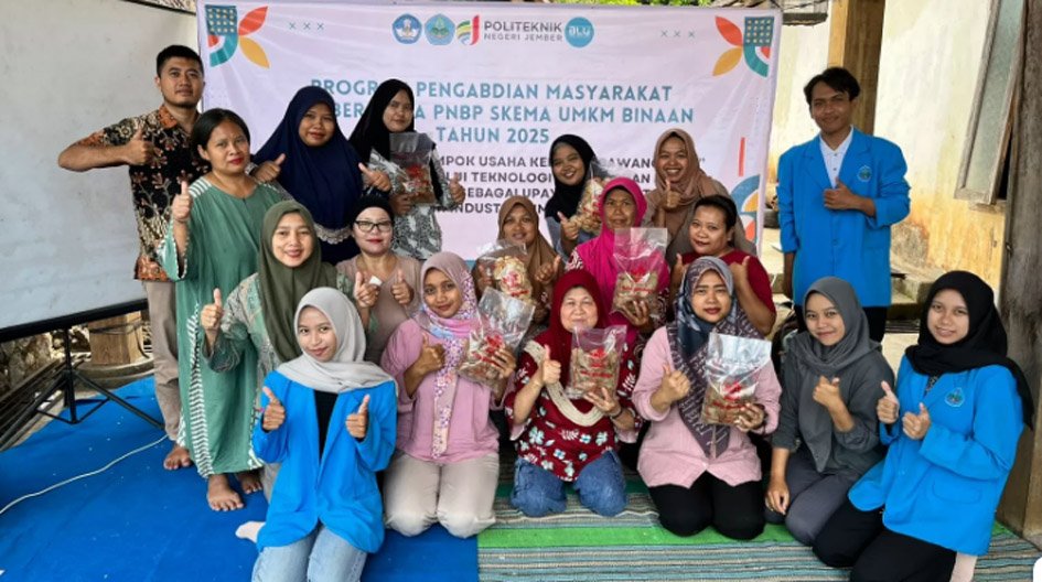 Minke.id – Tim Pengabdian kepada Masyarakat Politeknik Negeri Jember (Polije) melaksanakan program pemberdayaan kelompok usaha kerupuk bawang “MJT” di Desa Siwalan, Kecamatan Sawahan, Kabupaten Nganjuk, pada Rabu (10/9/2025). Program ini menghadirkan inovasi teknologi pengolahan dan strategi digital marketing sebagai solusi untuk memperkuat daya saing UMKM di era digital.